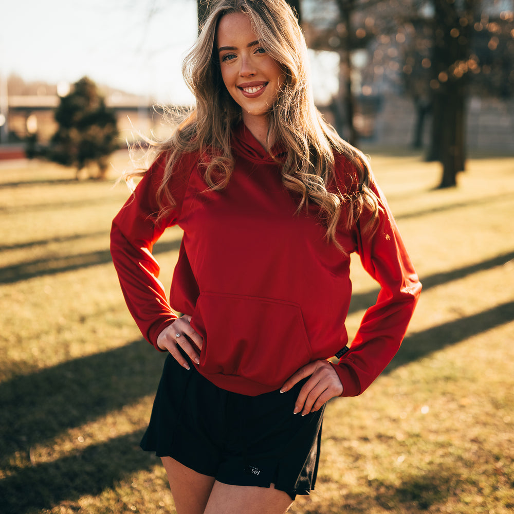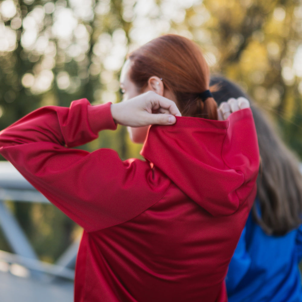 Mikina s kapucí lesklá - červená